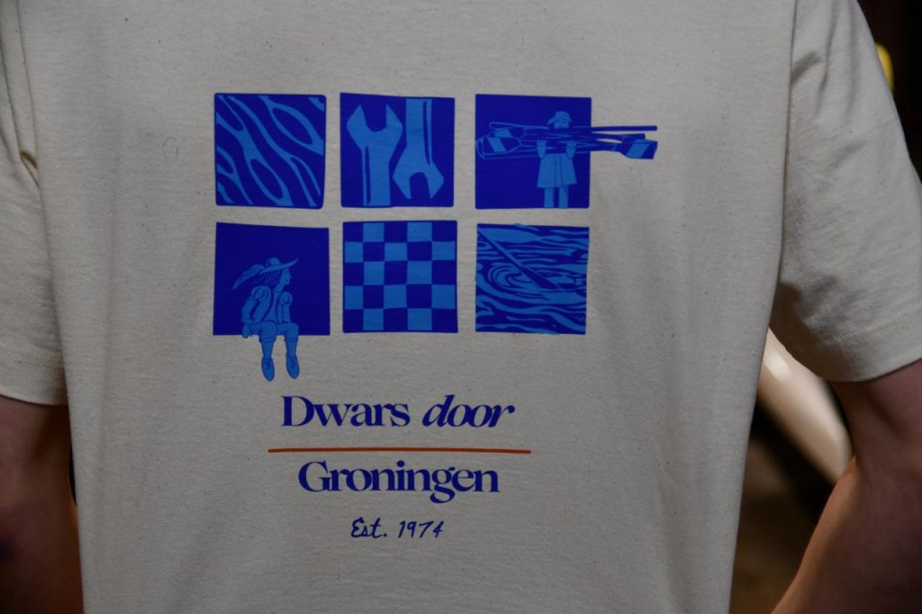 Voor het shirt hebben we de poppetjes een kleine transformatie gegeven en dragen ze nu bijvoorbeeld roeispanen in plaats van een schep.